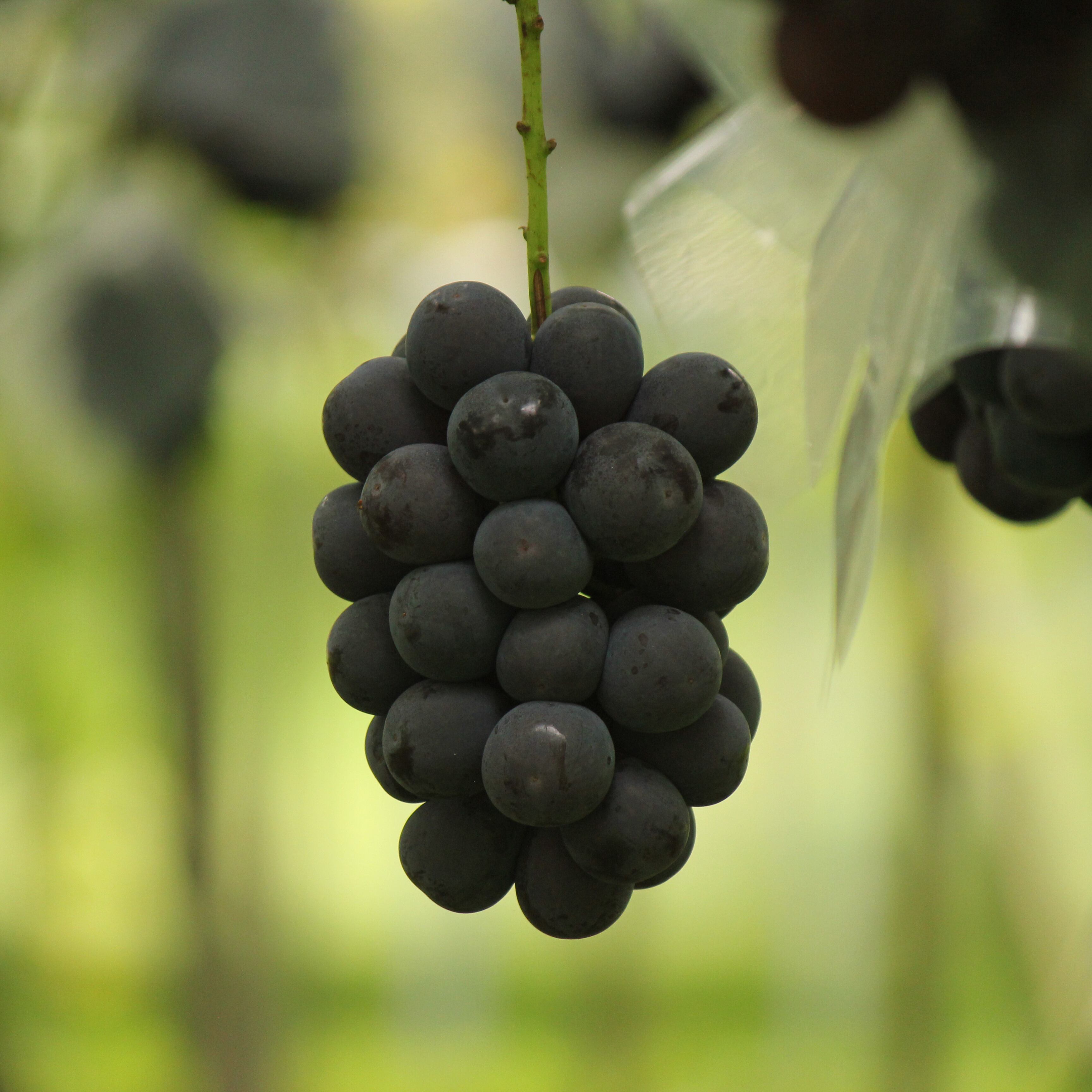 近年減少傾向にある黒系ぶどうで、房の形・粒の大きさも去ることながら、美しい「紫黒色」に育てるのがとっても重要な品種。